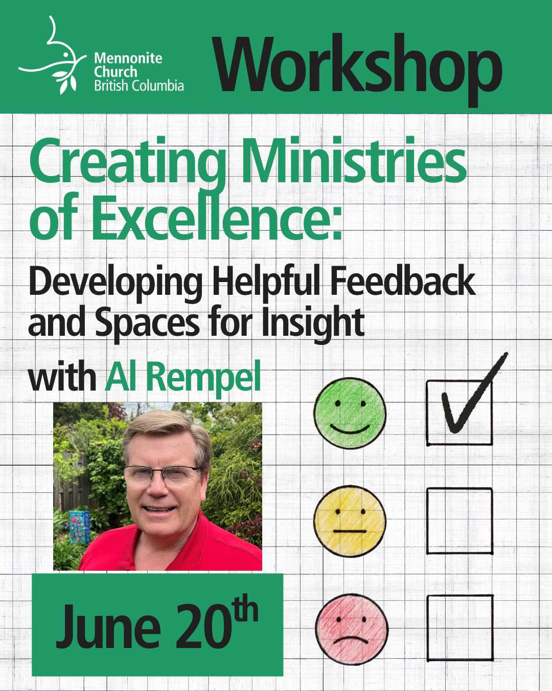 Al Rempel, Associate Executive Minister for Mennonite Church Canada, brings more than 15 years of experience working with congregations as they navigate human-resource and ministry-related challenges. Most recently, Al played a key role in developing two denominational policies for Mennonite Church Canada: Guiding Ministerial Leadership in Mennonite Church Canada (GMLC) and the People and Culture Policy.